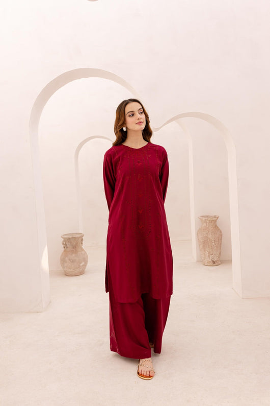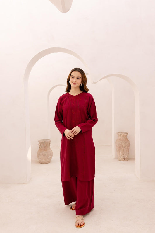 BURGUNDY RED DHANAK 2PC | UN-STITCH EMBROIDERY |WINTER WEAR Z#351