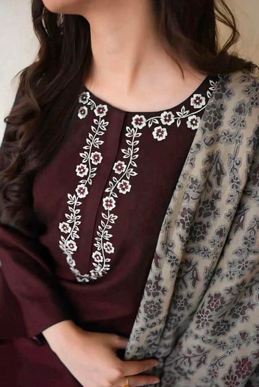 BURGUNDY RED DHANAK 2PC | UN-STITCH EMBROIDERY |WINTER WEAR Z#351