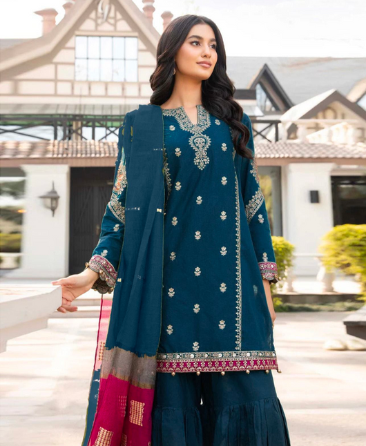 JAZMIN DHANAK 3PC | UNSTITCHED EMBROIDERY |D#2005