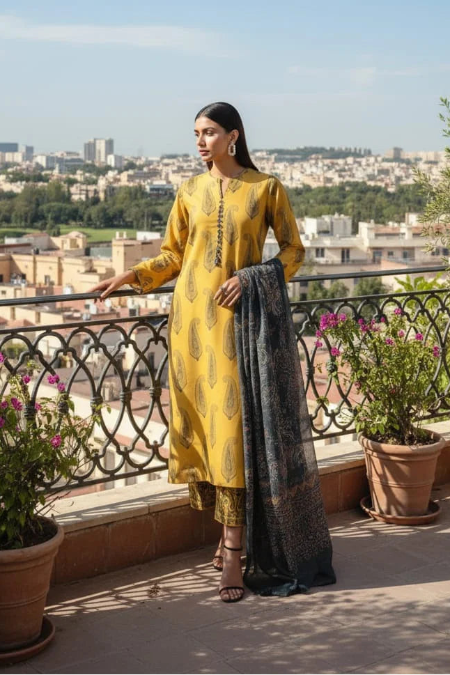 DYOT DHANAK 3PC | UNSTITCHED EMBROIDERY | D#1077