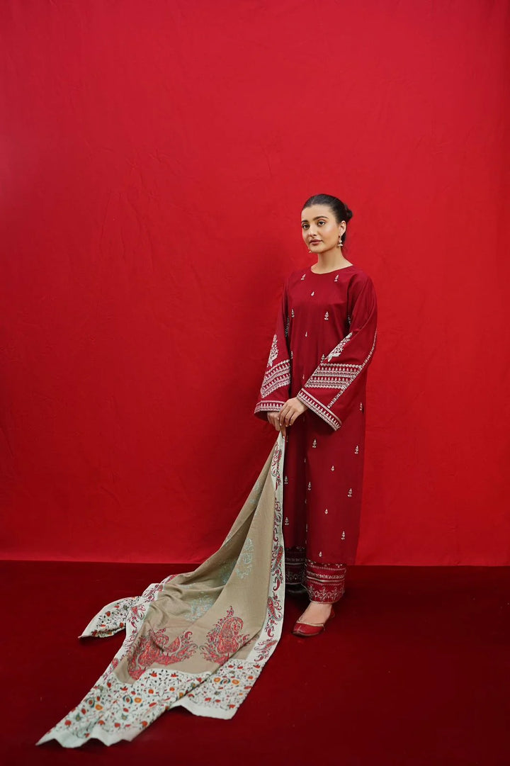 NISA KHADDAR 3PC | UNSTITCH EMBROIDERY | DF#354