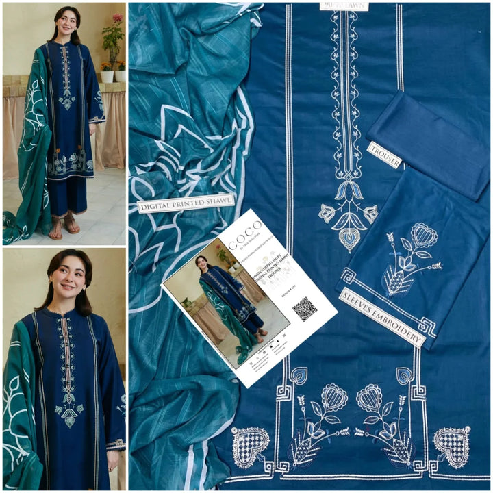 COCO DHANAK 3PC | UNSTITCHED EMBROIDERY | D#3212