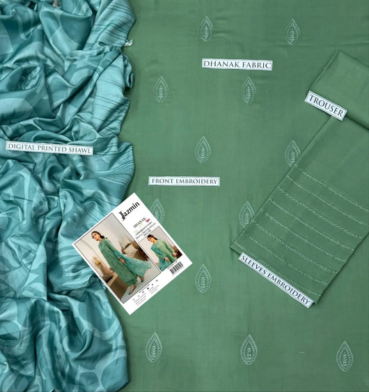JAZMIN DHANAK 3PC | UNSTITCHED EMBROIDERY |D#2005