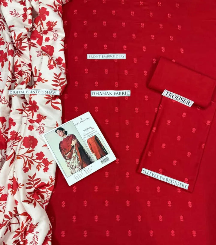 JAZMIN DHANAK 3PC | UNSTITCHED EMBROIDERYÂ |D#766